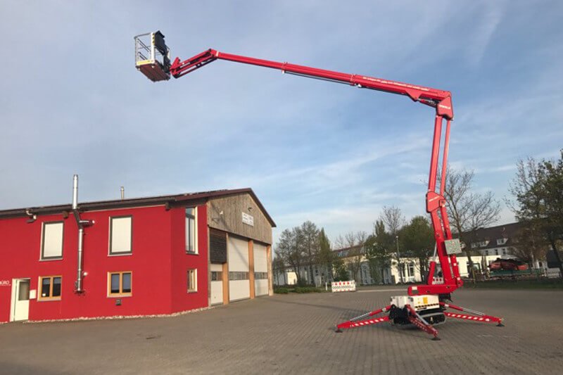 Der Teleskoparm fährt präzise in die Höhe. Gelenk- und Teleskopsegmente ermöglichen flexible Bewegungen für Arbeiten in verschiedenen Höhen und Winkeln.